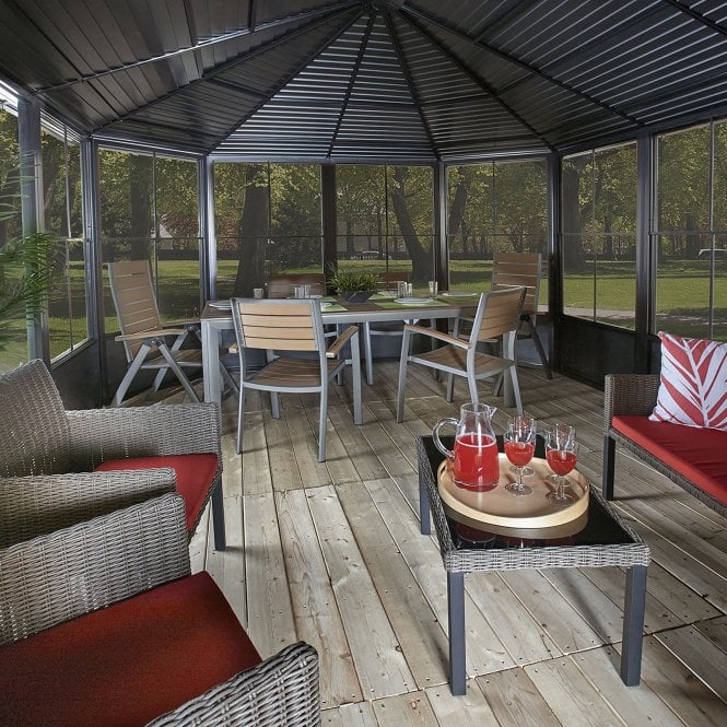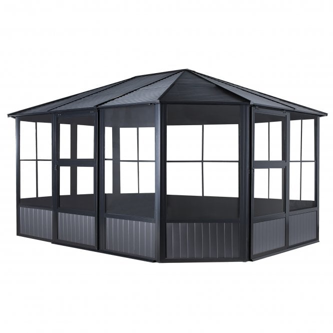 Transform your outdoors with the Sojag Charleston 12’x15′ (3.7m x 4.6m) Metal Solarium.
