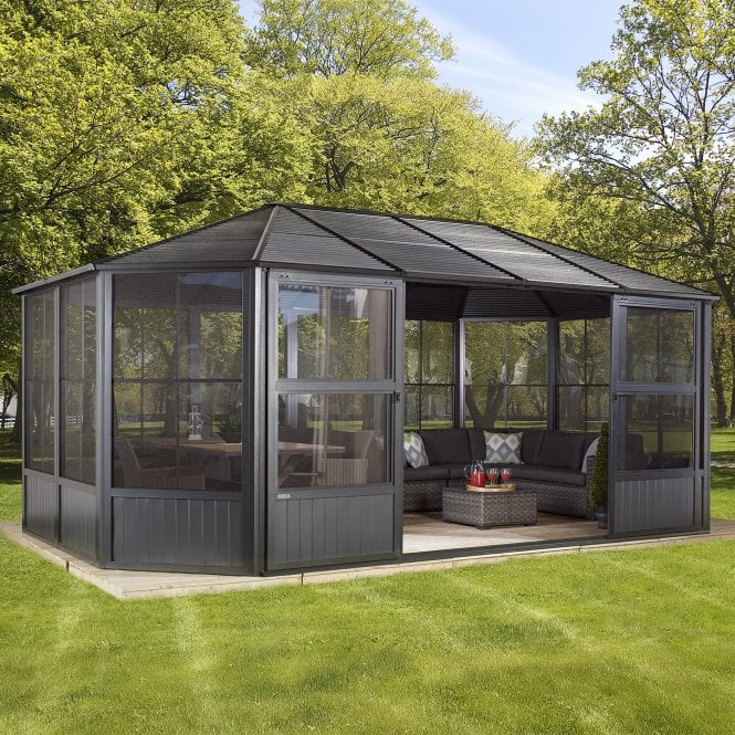 Transform your outdoors with the Sojag Charleston 12’x18′ (3.7m x 5.5m) Metal Solarium.