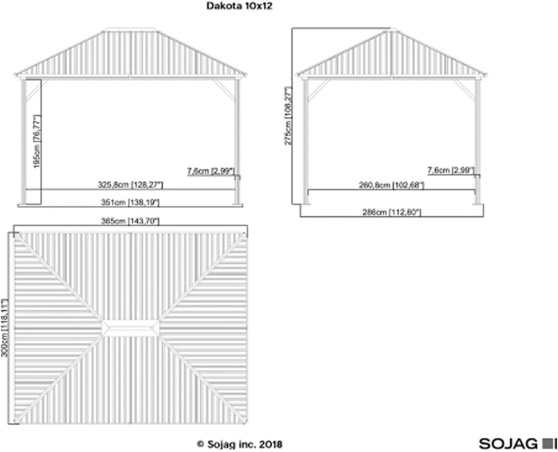 Sojag Dakota 10’x12′ (3m x 3.7m) Hardtop Metal Gazebo