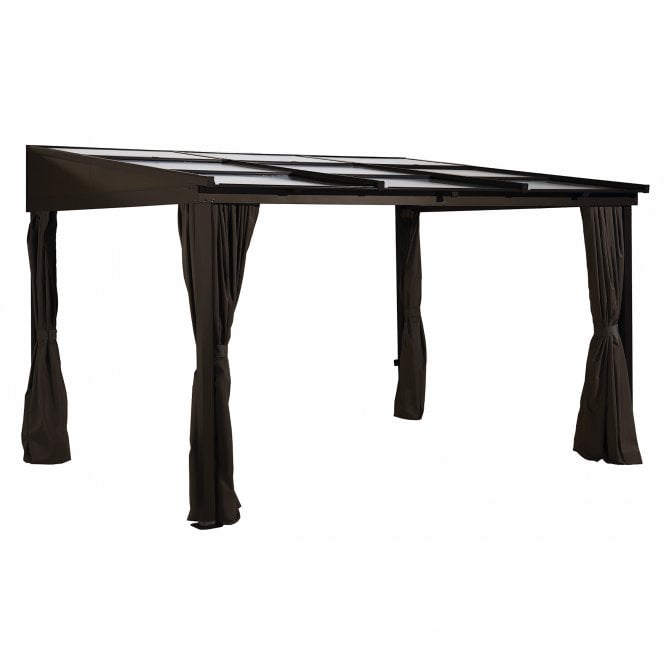 The Sojag Sutton 10’x12′ (3m x 3.7m) Lean To Polycarbonate Patio Cover  is a wall-mounted gazebo designed to provide a seamless transition from the home to the outdoors.