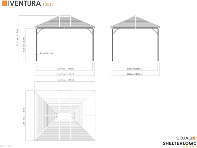 Sojag Ventura 10’x12′ (3m x 3.7m) Hardtop Metal Gazebo
