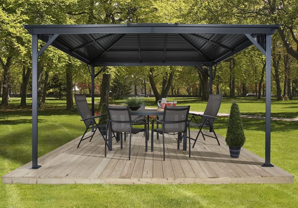 The Sojag Ventura 10’x12′ (3m x 3.7m) Hardtop Metal Gazebo will add stylish shelter and shade to any outdoor space.