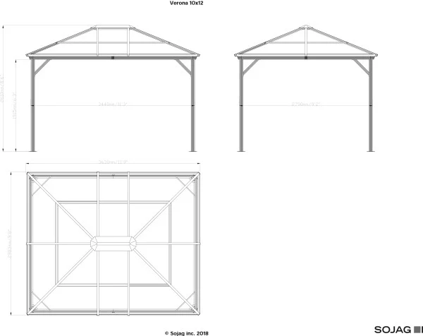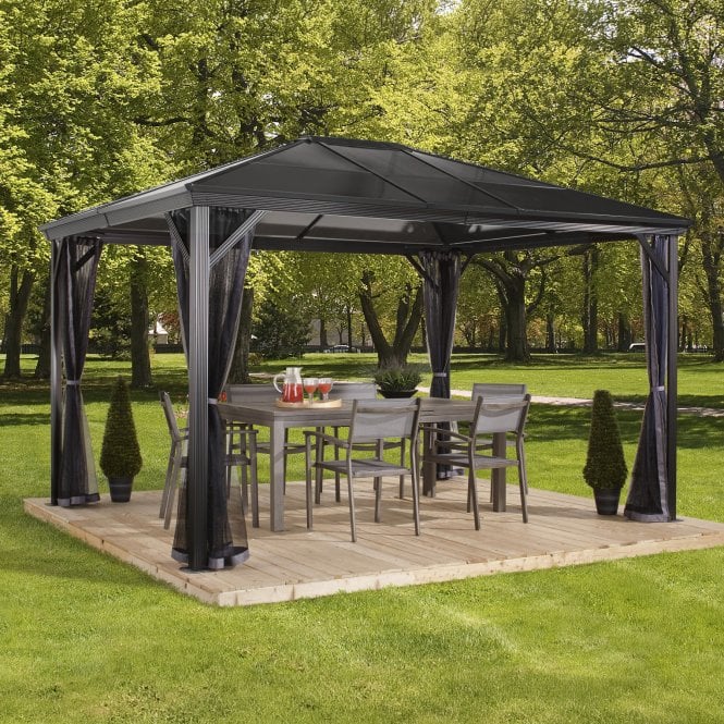 Enhance your outdoor setting with the Sojag Verona 10’x12′ (3m x 3.7m) Aluminium Polycarbonate Gazebo designed to stay up all year round.