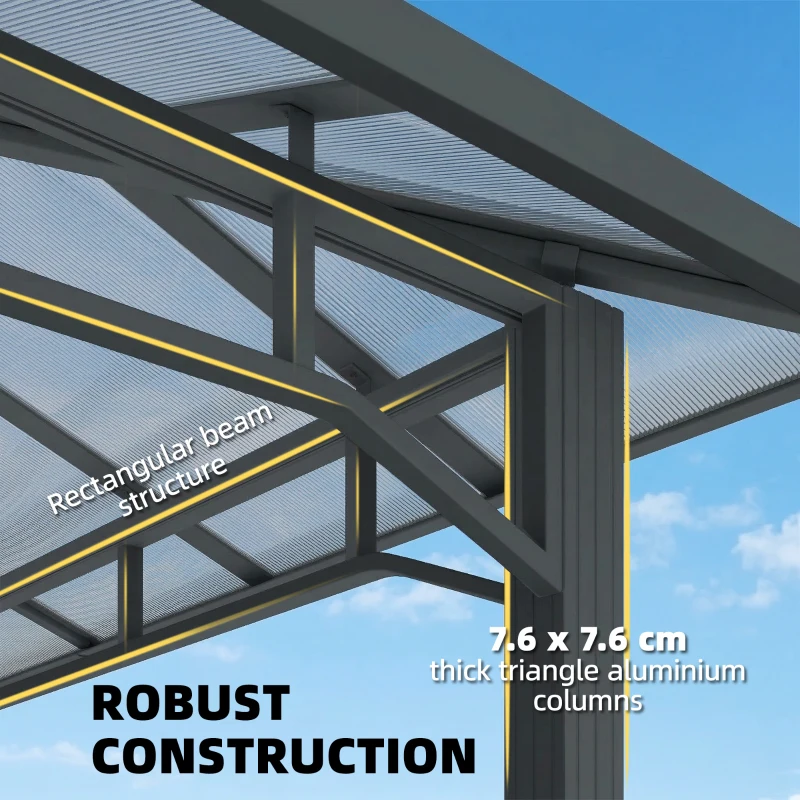 All-weather protection: Featuring a thick 6 mm PC hard roof, this hardtop gazebo offers reliable shelter from rain, snow and harsh UV rays with UPF50+ sun protection. Enjoy the outdoors comfortably with family and friends, no matter the weather