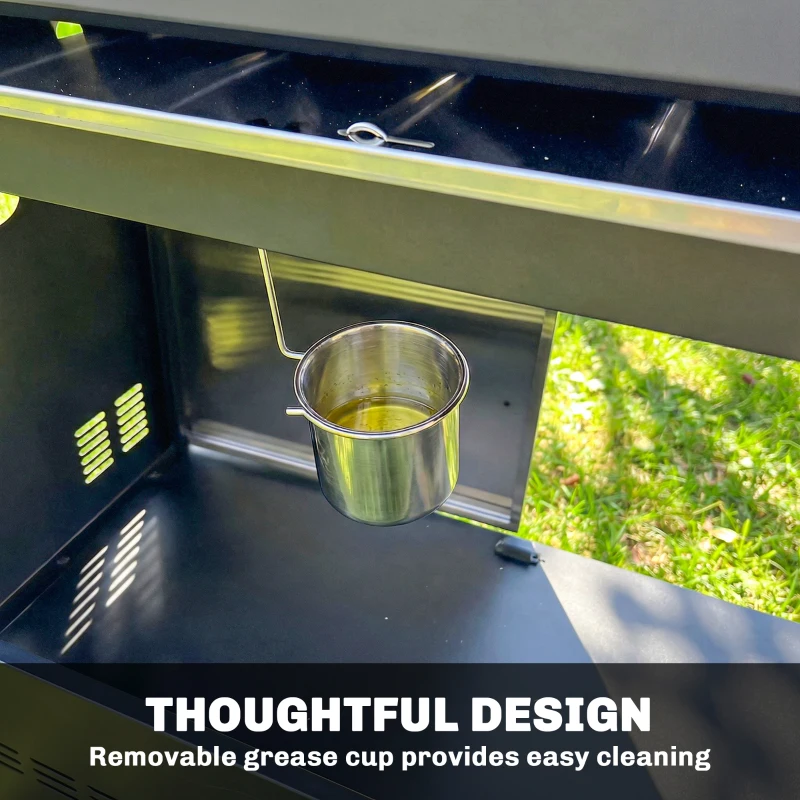 Lid with thermometer: Close the grill lid to retain heat and infuse your food with rich smoky flavors. The dual-scale thermometer ensures precise temperature control.