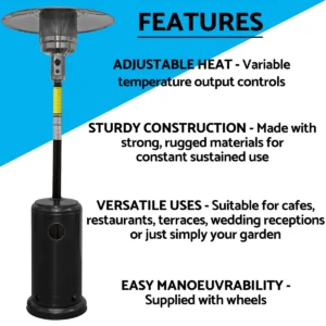 Versatile Uses – Excellent heat output for outdoors, suitable for cafes, restaurants, terraces, wedding receptions or just simply your garden