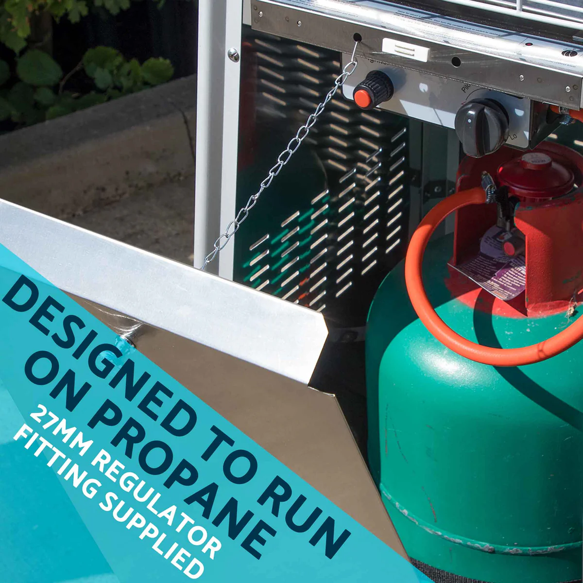 PLEASE NOTE THE PROPANE GAS BOTTLE IS NOT INLCUDED WITH THIS PRODUCT. A Gas Bottle Size (W x H): 32.5 x 70cm is required for its use!