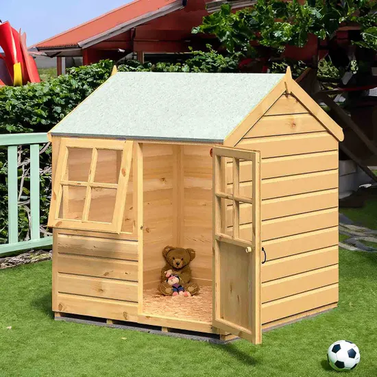 Measuring 4′ x 4′ and complete with a joinery quality door and window, it is an ideal first playhouse and looks cute in any garden or patio.
