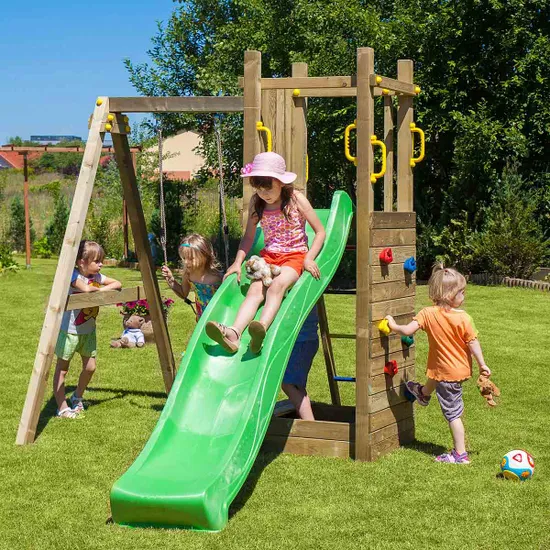 With a tower, ladder, rock climbing wall, slide, and a swing, this dynamic equipment offers endless fun and adventure.