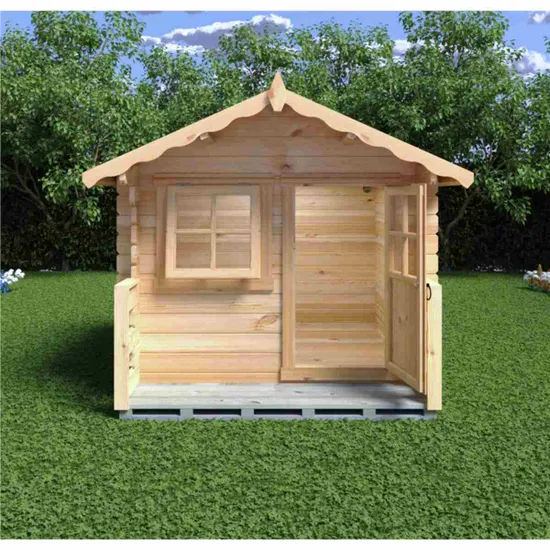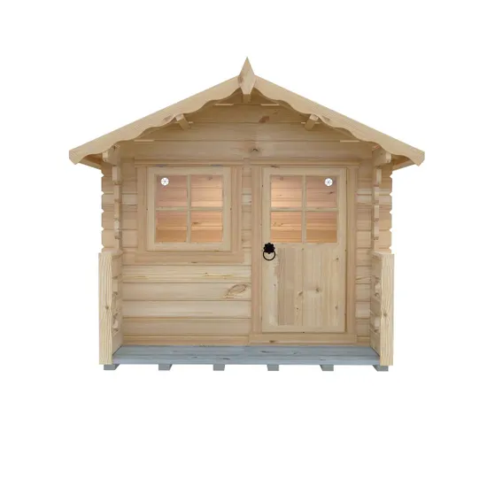 Featuring a genuine log cabin aesthetic, this compact playhouse fits seamlessly into any garden setting. Its unique design ensures it stands out as a stylish addition while blending harmoniously with your outdoor space. The untreated wood allows you to personalize the cabin with your choice of paint or stain, making it a perfect match for your garden’s colour scheme.