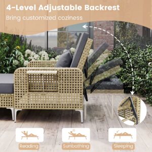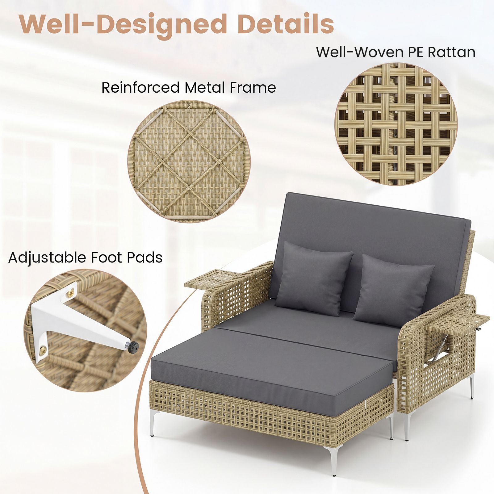 Cozy & Convenient Design: This outdoor daybed set features an adjustable backrest that enables you to tailor your lounging position for maximum comfort, whether you are reading, napping, or socializing. Supported by premium gas struts, the side tables allow you to keep your outdoor essentials close at hand and fold them as needed.
