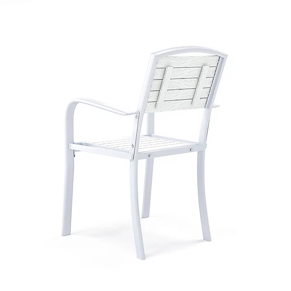 The set includes four chairs durably made from weather-resistant material to last you through the seasons. The supportive backs ensure that you’re comfortable as you soak up the sun. Thanks to the basic white colour and minimalistic design, the set is easy to arrange within any modern space.
