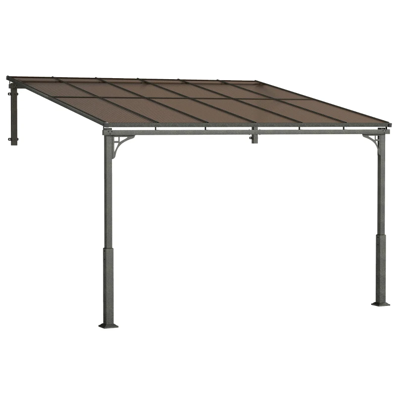 Transform your outdoor space with the Outsunny 11’x 10′ Wall-Mounted Metal Lean-to Pergola Polycarbonate Roof – Brown.