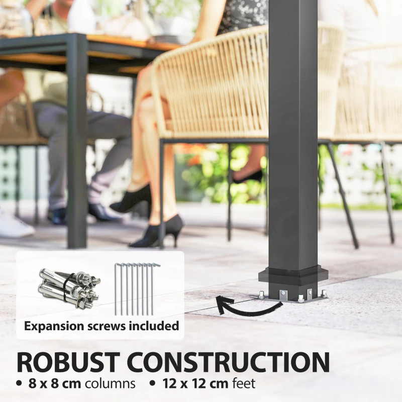 Robust metal construction: This heavy duty gazebo has a strong 8 x 8 cm metal frame, included expansion screws to mount pre-drilled feet to hard ground. Stable standing in winds up to 61-72km/h.
