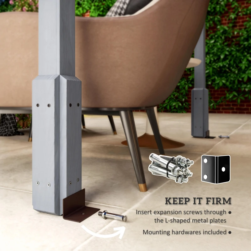 Expansion screws and metal plates included to mount your pergola to hard ground