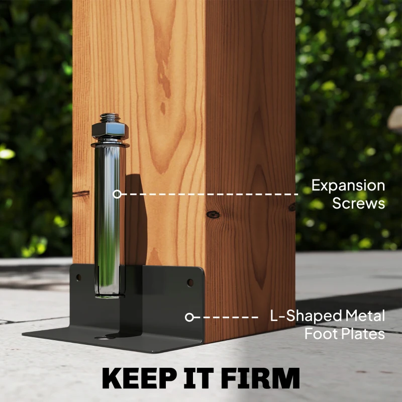 Comes with L-shaped metal foot plates and expansion screws for stability in up to level 7 winds