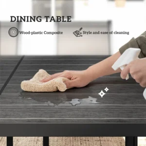 Rustic-style dining table: Plastic wood composite board tabletop is tough, water-resistant and low-maintenance – suitable for outdoor use. A worn-in, teak-effect design looks great in natural surroundings.