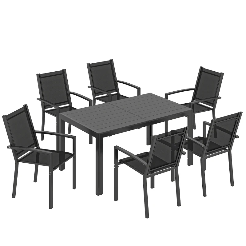 Seven-piece garden dining set: Comes with a rectangular dining table and six matching dining armchairs – plenty of seating room for you and company to enjoy meals, chats and relaxing outdoors together.