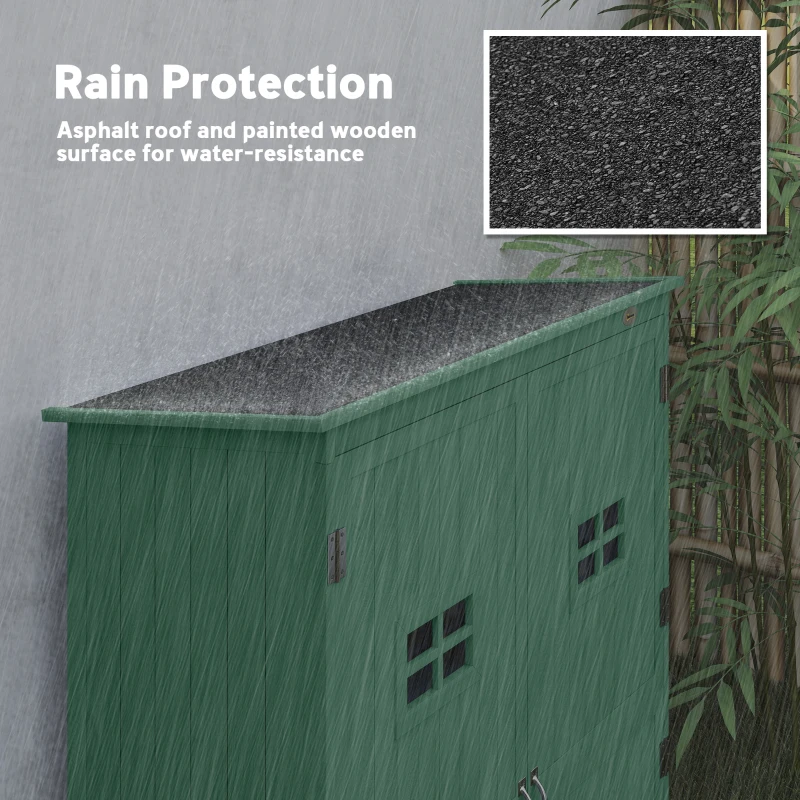 Give your gardening tools and outdoor essentials the great storage and organisation place with this Outsunny 1.6’x 4.1′ Fir Timber Door Garden Storage Cabinet with Windows- Green from Outsunny.