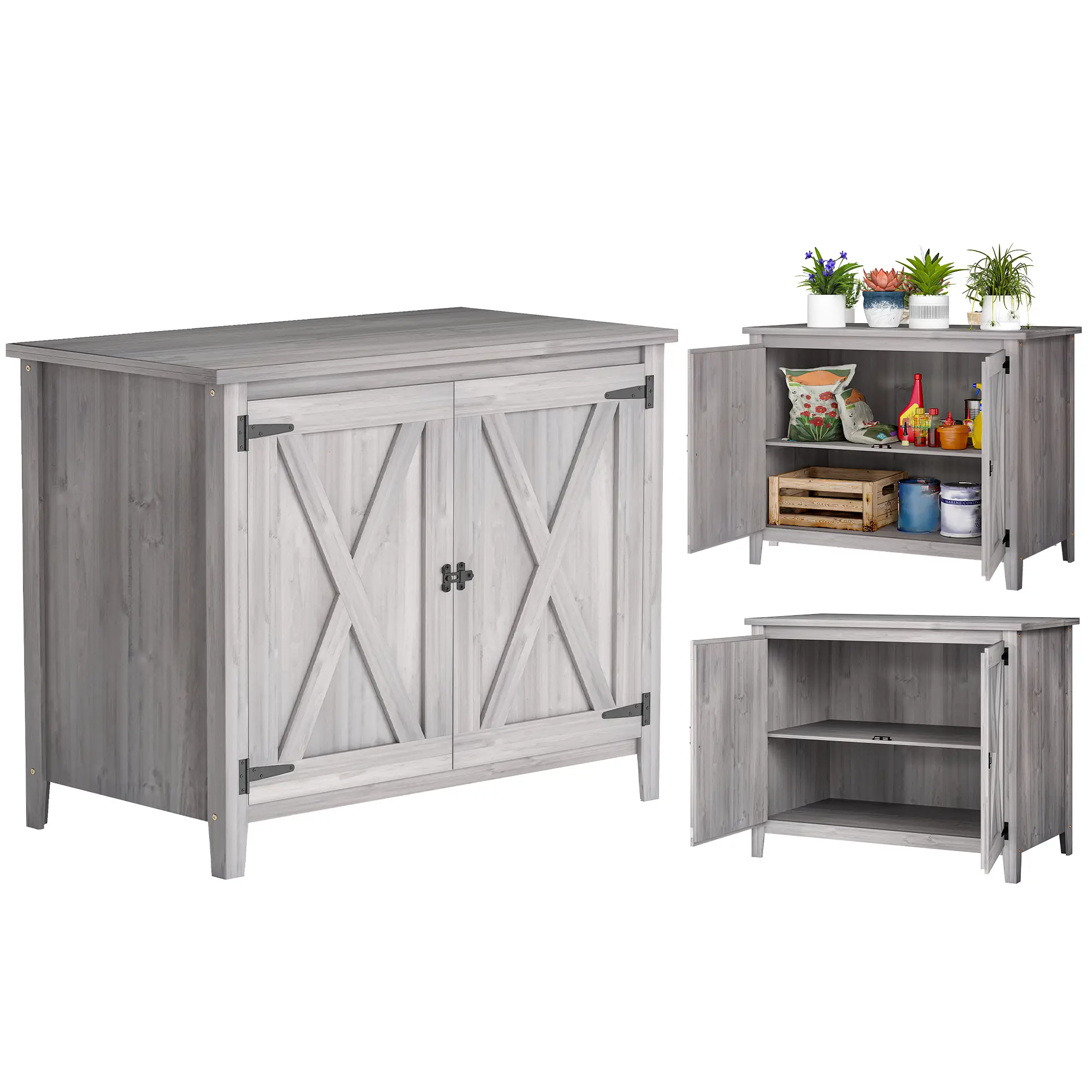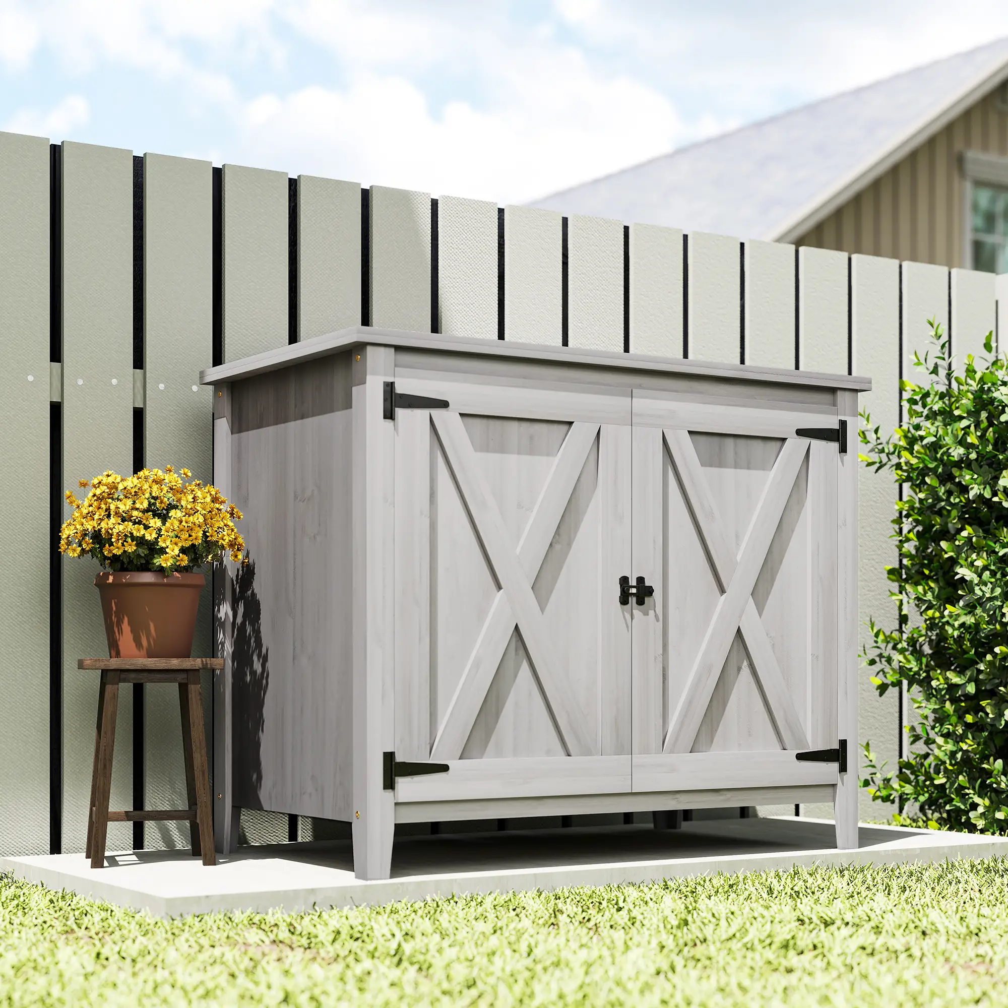 Top space utility: The flat top of this outdoor cabinet serves as a great area for potting plants or storing garden essentials, enhancing functionality in your outdoor space.