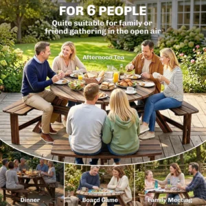 Versatile outdoor use: More than a picnic table, this patio furniture supports family gatherings, relaxing afternoons, or temporary work. Suitable for backyards, patios and gardens, it offers a practical, flexible solution for everyday outdoor use
