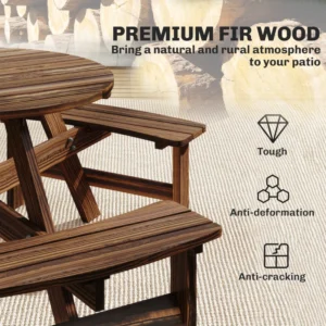 The Outsunny Timber 6 Seater Patio Round Picnic Table – Carbonized Tan is a robust, all-in-one design.