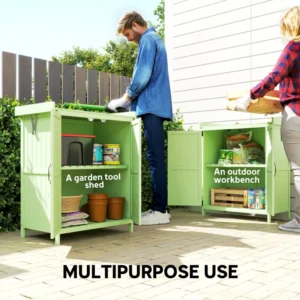 Inner two shelves: Garden tool storage shed is great for organising garden tools and other essentials – keep everything in a single convenient spot.