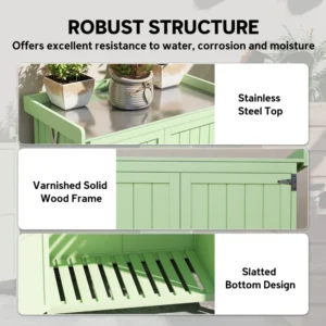 Stainless steel worktop: Small shed offers a solid, safe spot to work on outdoor projects. Great for garages, greenhouses and similar.