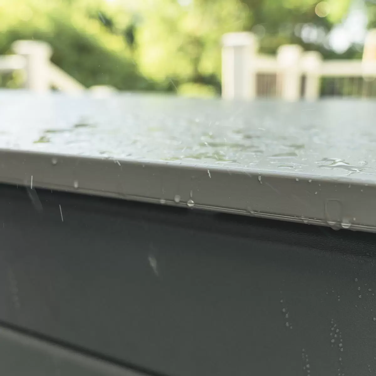 The wood grain panels have the natural look and feel of wood without the maintenance of painting or staining. It is durable, UV protected, and weather resistant to ensure your belongings receive years of protection.