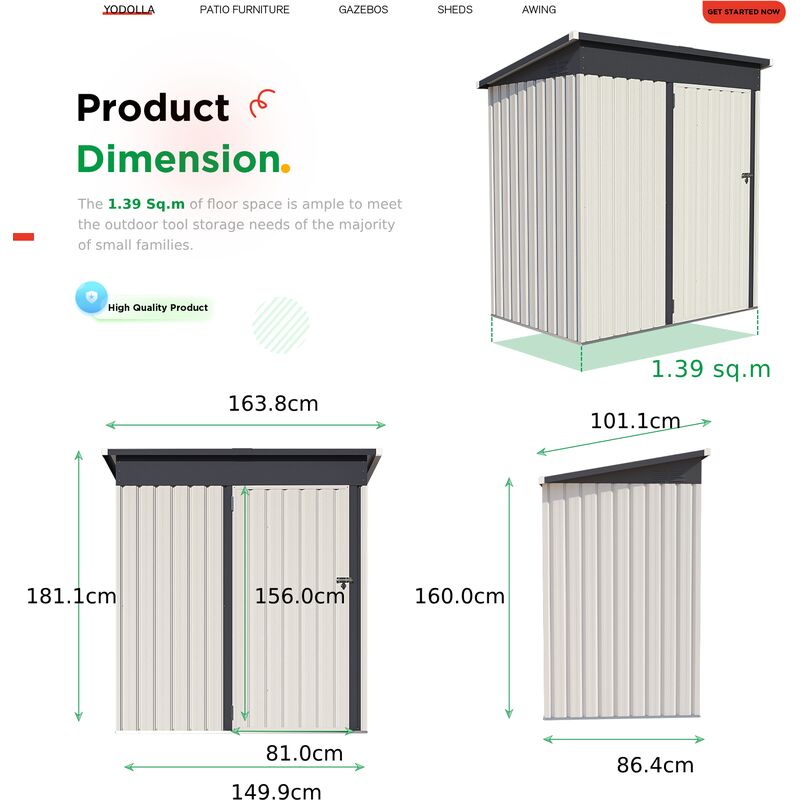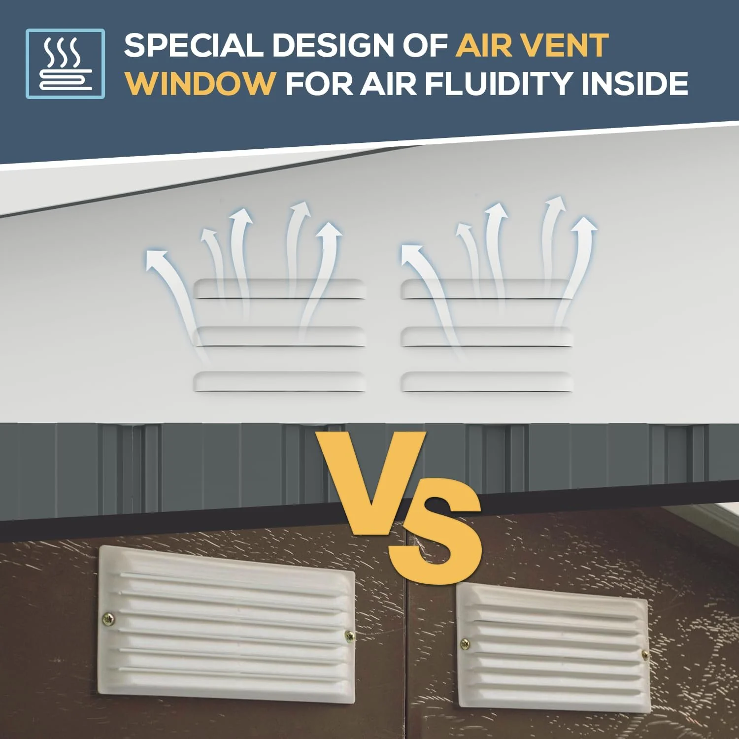 Perfect for maximizing storage in compact areas, this outdoor shed offers versatile functionality. It can serve as a storage room for tools, equipment, or gardening supplies, or as a garbage collection space to keep your backyard clean and organized. Unlike wooden sheds, this metal shed is built to last, thanks to its durable steel construction.