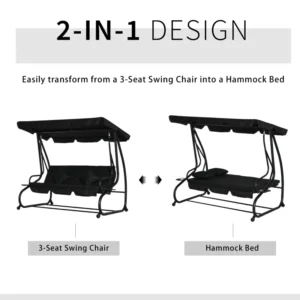 2-in-1 design: Three-seater garden swing easily converts from a seat into a bed. Enjoy sitting and sleeping with just one product – no extras needed.