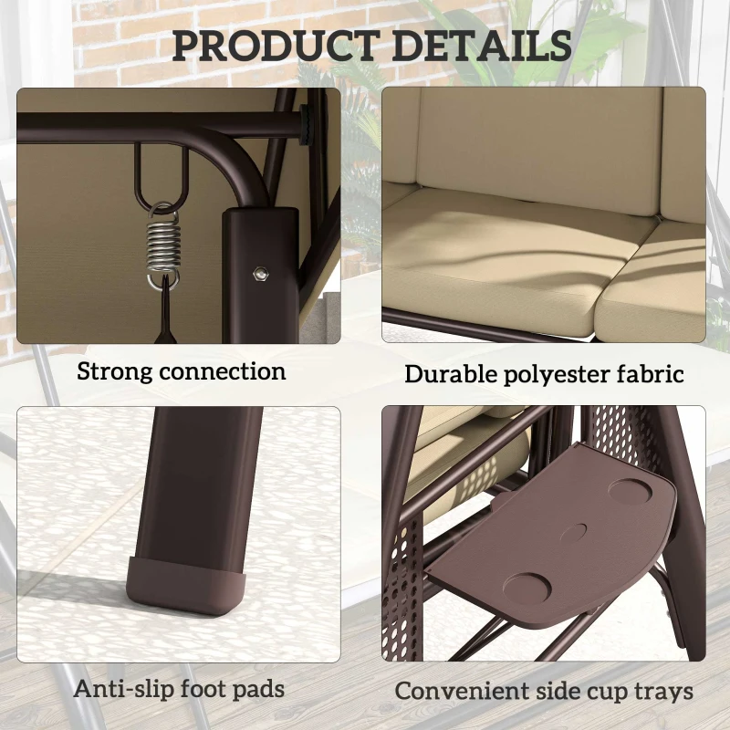 Outsunny is proud to present this stylish Outsunny Three-Seater Metal Garden Swing Chair – Brown.