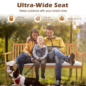 Solid Acacia Wood Construction: Crafted from natural acacia wood, this 3-person patio bench is robust and crack-resistant, holding up to 540kg. In addition, the middle legs with adjustable foot pads ensure reliable stability and longevity for years of outdoor enjoyment.