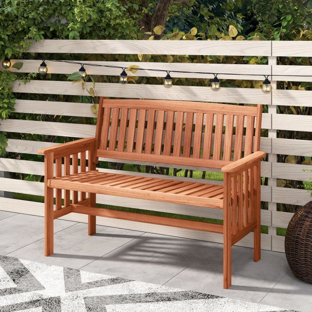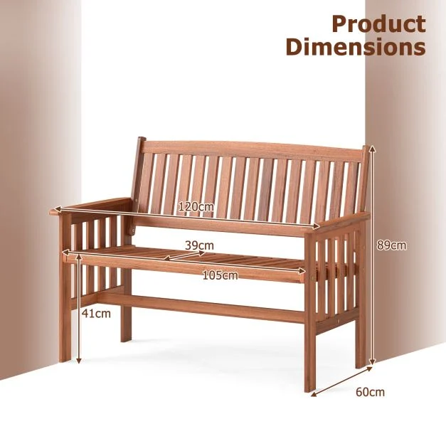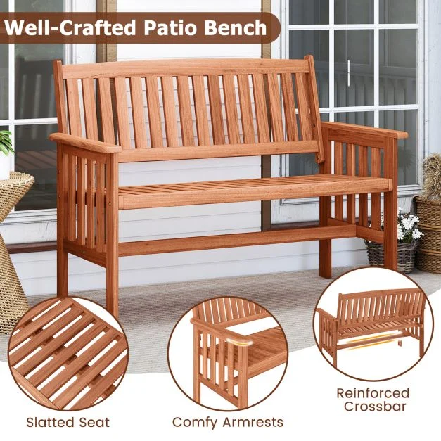 Stable Construction: This patio wood bench boasts a sturdy frame, offering reliable and stable seating that can withstand daily outdoor use. Moreover, the reinforced crossbar ensures extra stability.