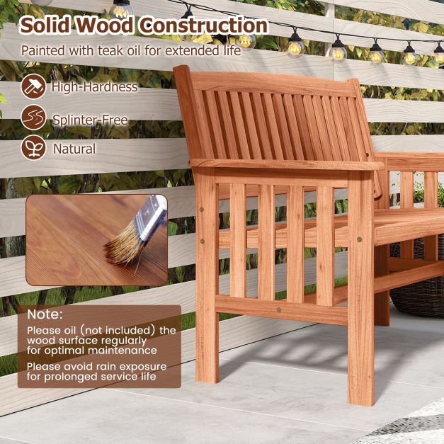 Premium Wood Charm: This outdoor bench is crafted from high-quality wood that showcases natural beauty while ensuring a splinter-free surface for a smooth touch. Please regularly oil (not included) the wood surface for optimal maintenance.