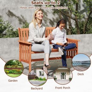 Its ergonomic design includes a 110° inclined backrest, breathable slatted seat and cozy armrests, providing excellent comfort during long periods of relaxation. The spacious seating area comfortably accommodates 2 people, making this balcony bench an ideal choice for sharing outdoor leisure time. Additionally, the high-quality wood construction offers natural beauty and a splinter-free experience to ensure a smooth touch while adding a rustic charm.