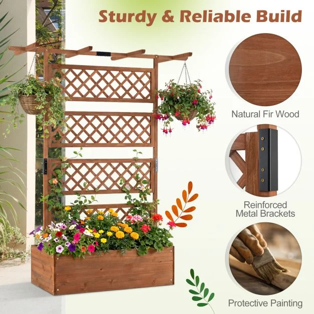 Sturdy and Reliable Build: Crafted from natural fir wood with protective painting, the raised planter box is built to last. Reinforced metal brackets add strength and sturdiness, making it a reliable choice for outdoor gardening under various weather conditions.