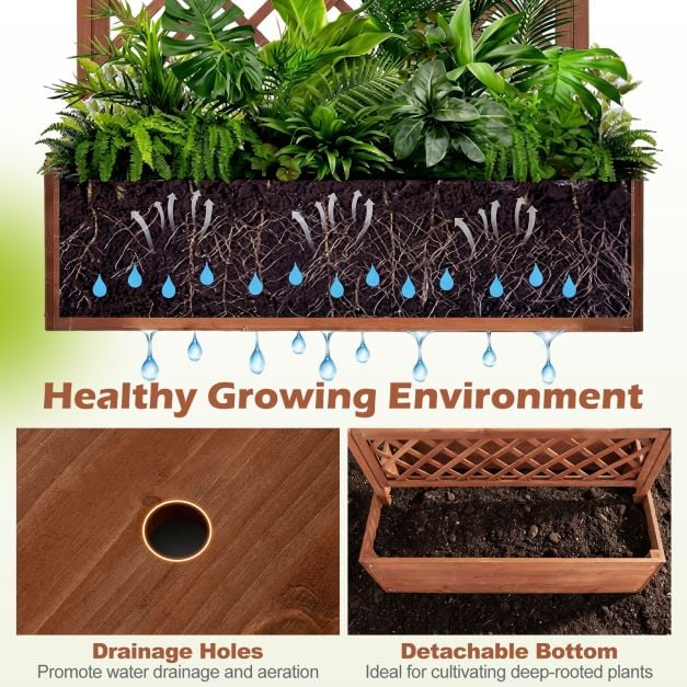 Superior Water Management: Equipped with several drainage holes, this raised planter promotes efficient water drainage and air circulation. The detachable bottom design is perfect for growing deep-rooted plants, ensuring healthy growth and preventing water-logging.