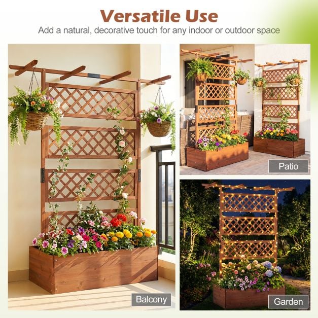 The construction uses natural fir wood with protective painting and reinforced metal brackets, ensuring long-term outdoor performance. With drainage holes and a detachable bottom, this raised planter box promotes optimal water management and healthy root development. Designed for easy setup and versatile use, it enriches both indoor and outdoor areas such as patios, balconies, and gardens, doubling as an effective privacy screen and stylish gardening addition.