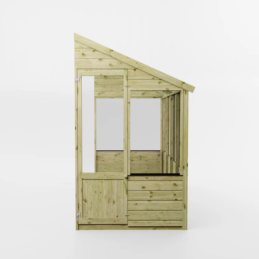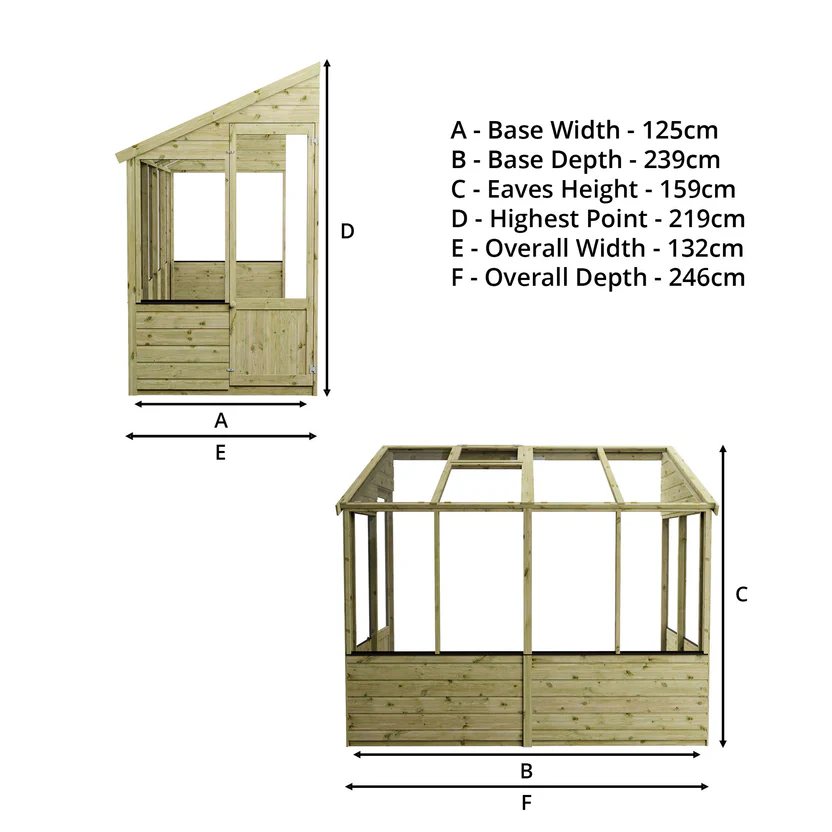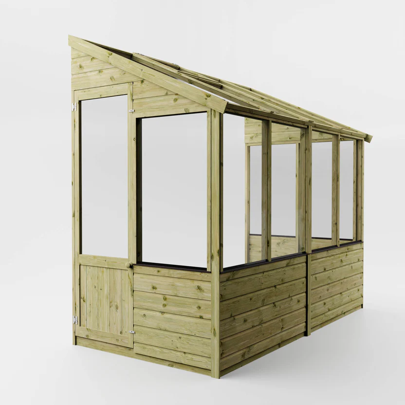 The Mercia 8’x4′ Traditional Green Dipped Treatment Lean To Timber Greenhouse is a space saving design that simply attaches to the side of a permanent wall.