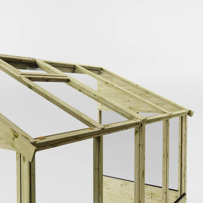 The walls of this greenhouse are constructed using premium horizontal interlocking tongue and groove boards with a shiplap profile. The shiplap profile includes a protective and aesthetically pleasing lip to create a strong, weatherproof panel. Complete with thick wooden framing to support the cladding internally, this building offers a rigid and long-lasting structure.