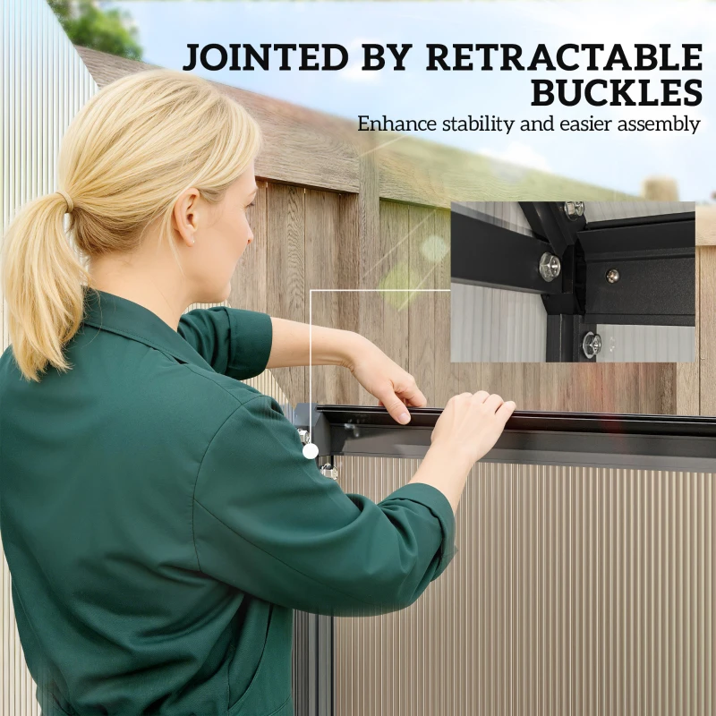 UV-Resistant Polycarbonate Panels: Our greenhouse provides a certain level of UV protection, blocking intense light while supplying sunlight essential for plant growth—giving you the great spot to grow your favourite plants and flowers all year round