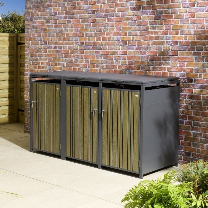 Ideally sized to hide away three standard 240 litre wheelie bins, the Wimbledon Triple Bin Store is finished in a striking anthracite with vertical slats, combining style with practical outdoor storage.