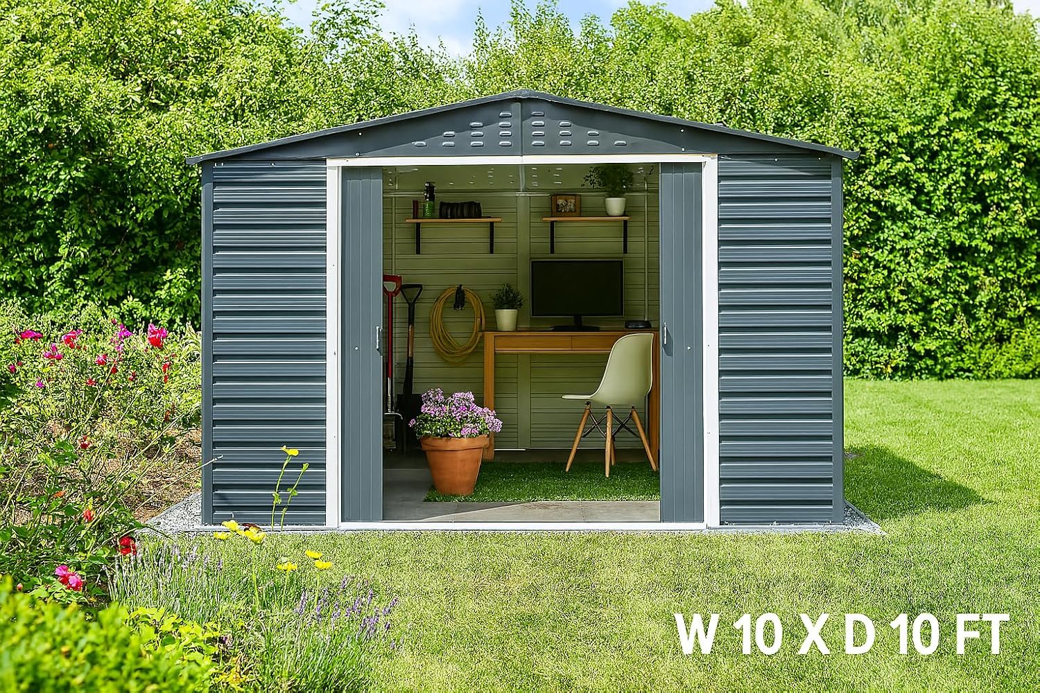 The Duramax 10×10 Alpine Metal Apex Garden Shed – Anthracite is  the perfect solution for those looking for durable, secure, and attractive outdoor storage.