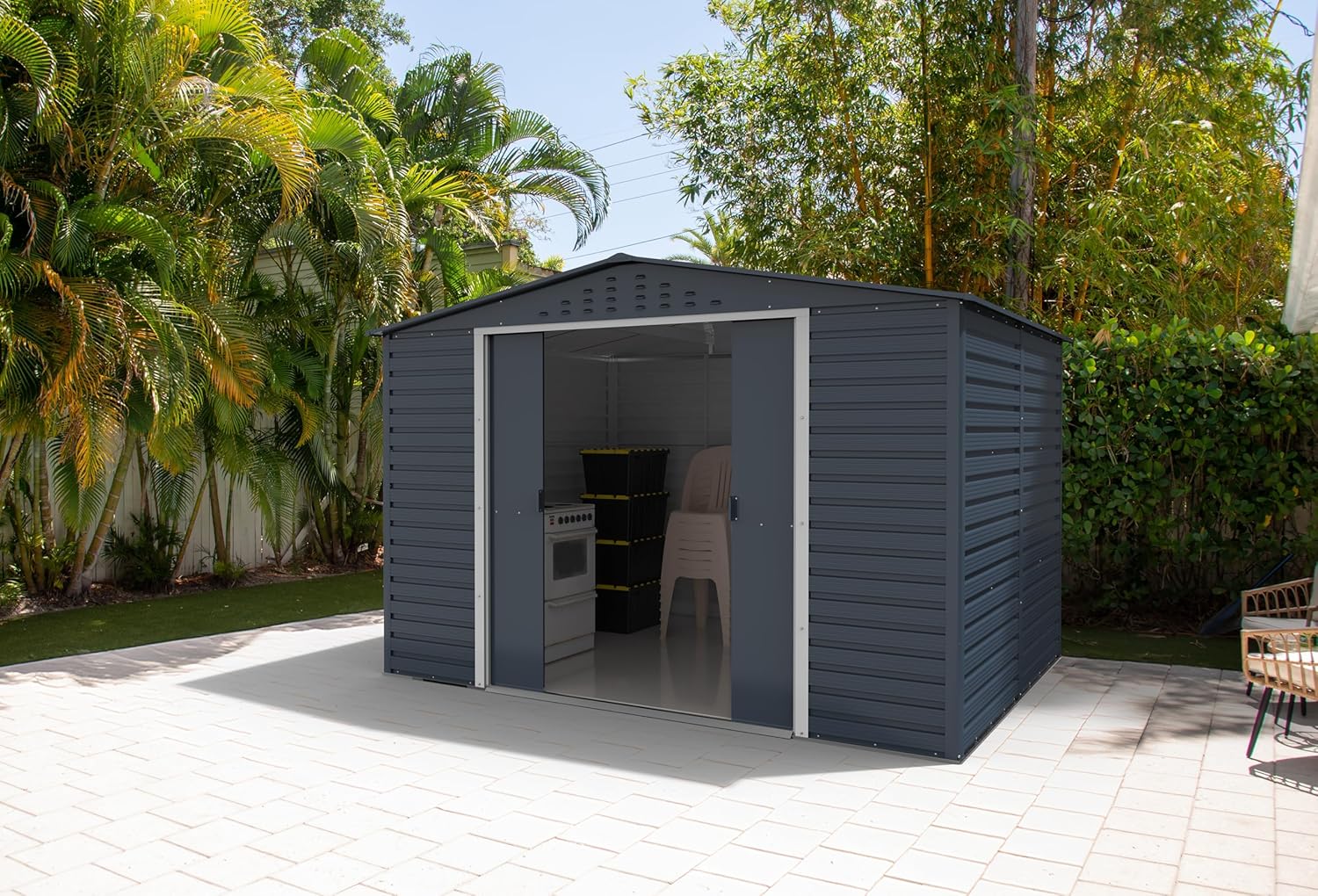 The Duramax 10×8 Alpine Metal Apex Garden Shed – Antharcite is  the perfect solution for those looking for durable, secure, and attractive outdoor storage.