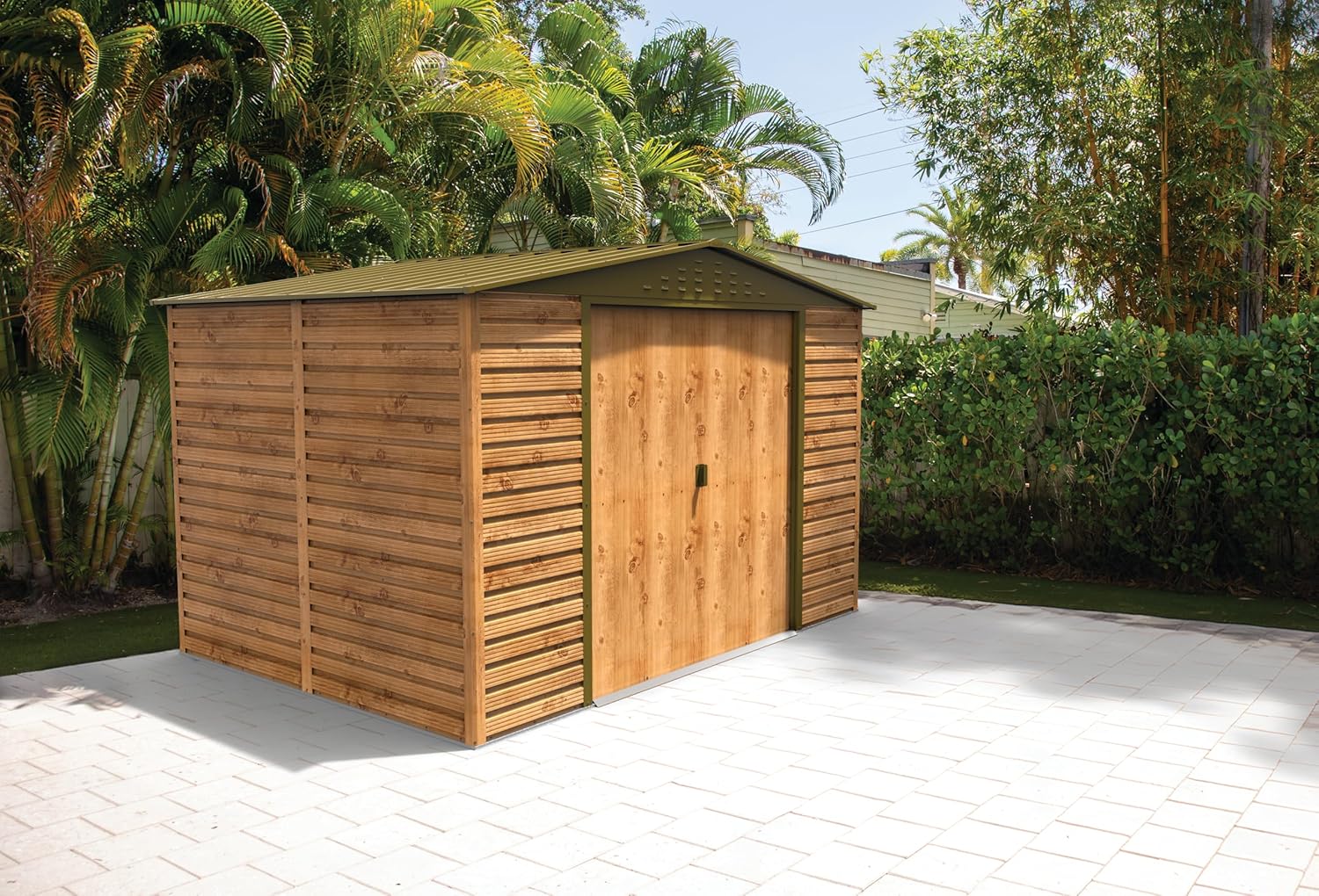 The Duramax 10×8 Alpine Metal Apex Garden Shed – Woodgrain is  the perfect solution for those looking for durable, secure, and attractive outdoor storage.