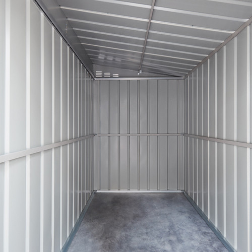 Globel Metal Sheds are perfect for caravan parks where non-combustible storage sheds are compulsory and will provide a rust-free, durable storage solution for a minimum warranty period of 15 years. These products are the highest specification lightweight metal garden sheds in the market. Apart from the high grade of 0.3 steel and paint finish, they have ventilated gables and all standard buildings have the tallest wall height available. The frame and base rails are made from solid heavy gauge galvanised steel and the parts and their fixings are simple and straightforward to assemble in the quickest possible time with a video guide available to demonstrate how simple this procedure is. Each door assembly, and particularly, the K Style Single Door has been designed with strength and simplicity.  Accessed through a single hinged door which allows easy everyday access to your equipment, the door allows a padlock to be fitted (padlock not included) , and with reinforced bracing throughout, this storage unit offers Superior Security for your gardening equipment.