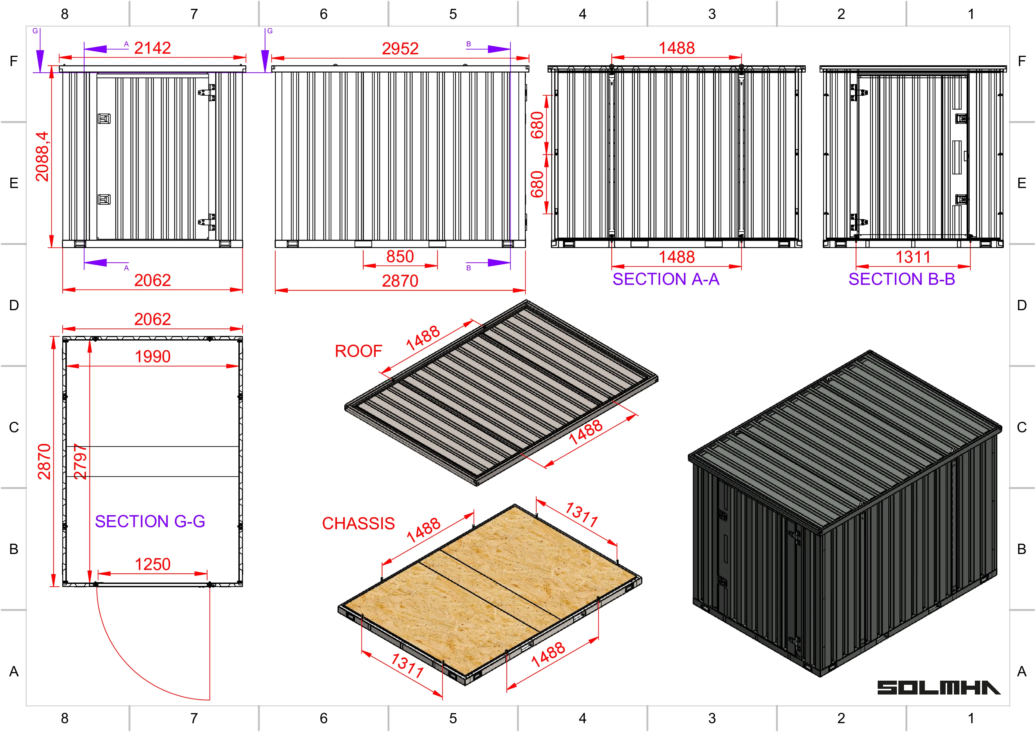 Professional Installations are available. Prices shown are for installation of the unit upon an existing base. We recommend that all Solmha storage conatiner units are situated on a firm, flat, level base. Ideally this should be 50mm concrete or on flagstones.