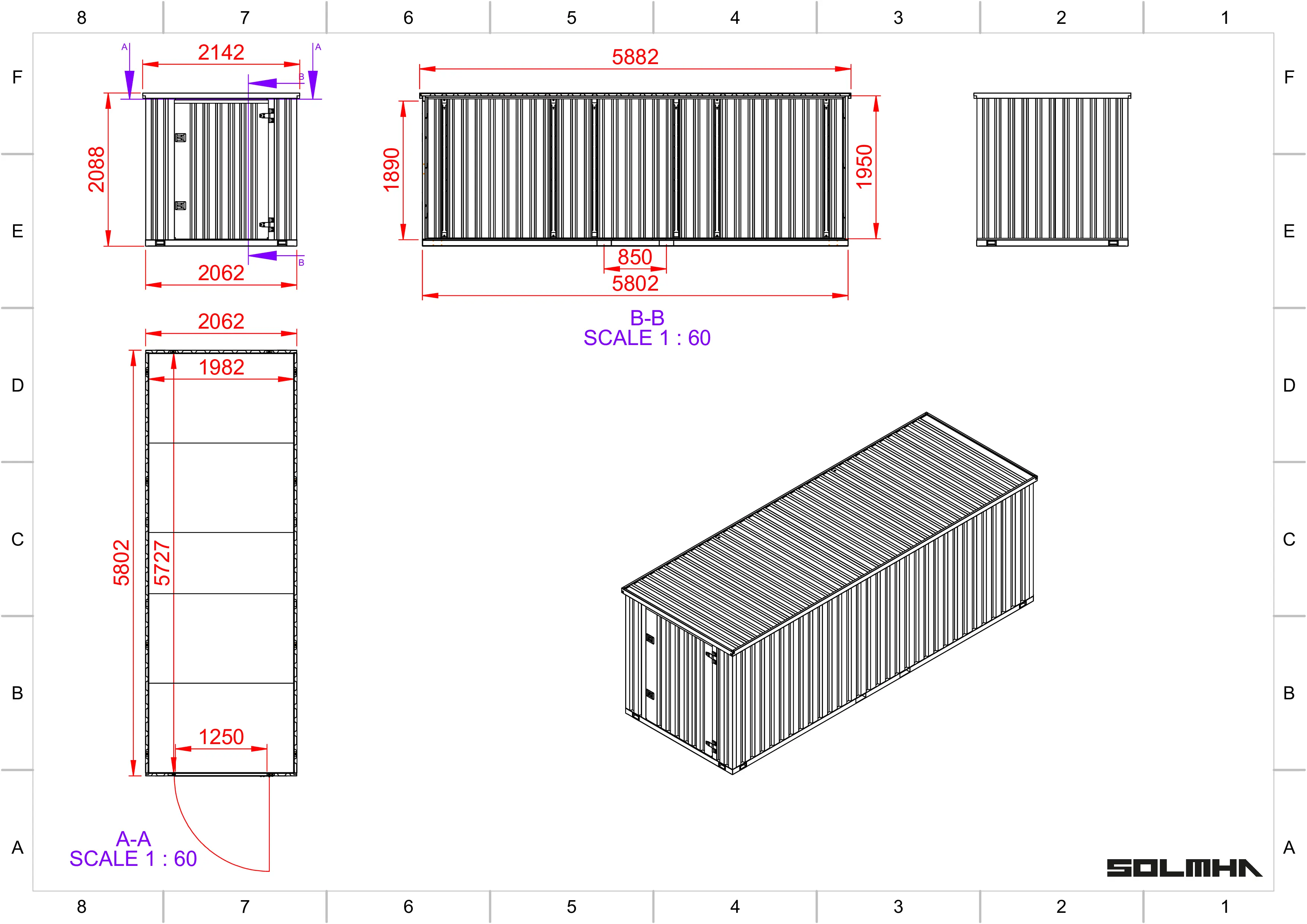 Lengths: – 5882mm (Internal 5700mm)