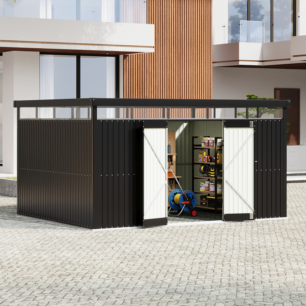 Enhance your outdoor storage with this Living and Home 12.5′ x 10′ Flat Roof Tool Shed – Charcoal Black. The shed is designed to meet your outdoor storage needs.
